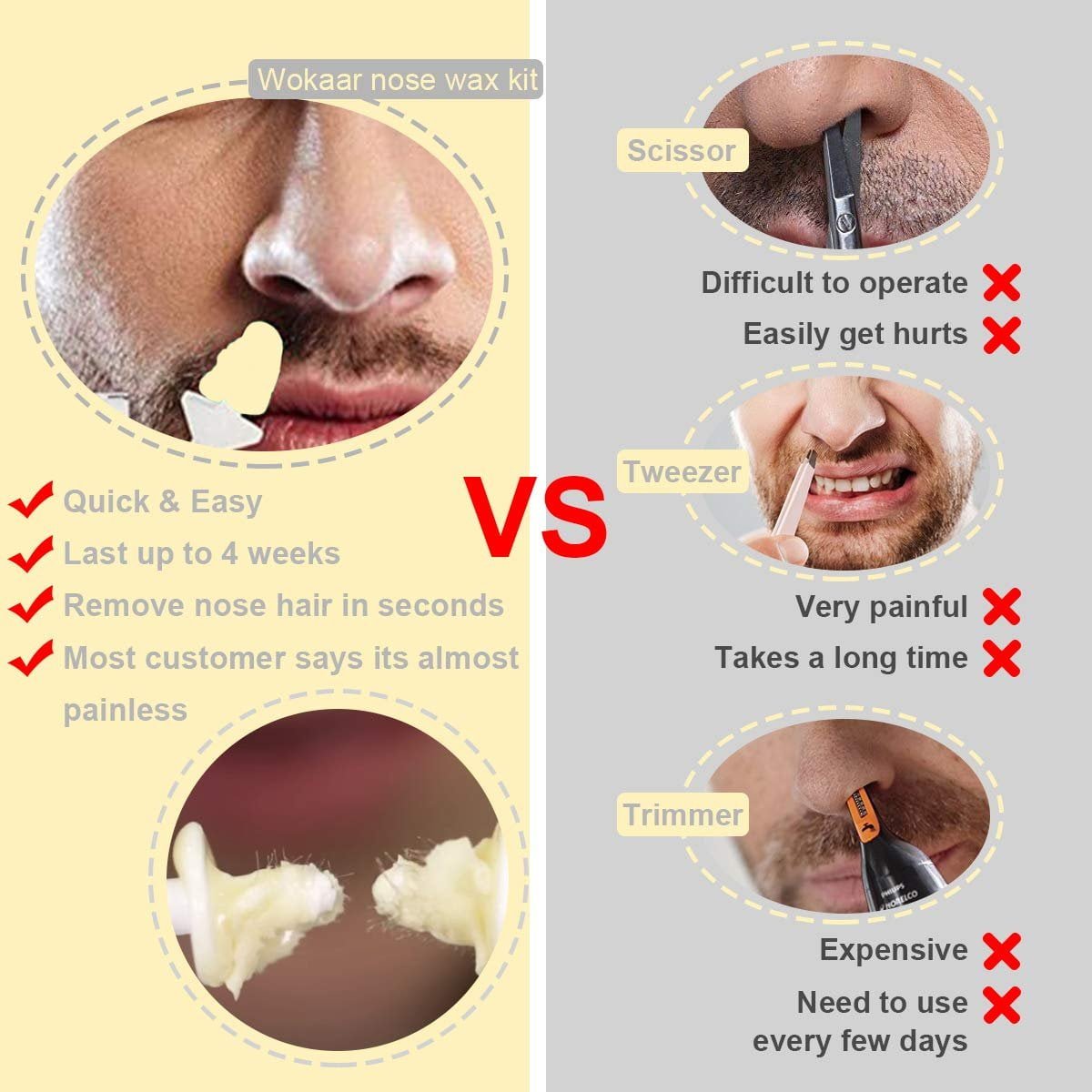 ♥ SIMPLY&SAFTY: You can easily remove nose hair at home by a microwave oven heating nose wax. leaving you with a clean. fresh nose. Let you show the most confident side anytime. anywhere.