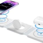 Wireless Charger. Magnetic Foldable 3 in 1 Mag-Safe Charger. Fast Travel Wireless Charging Station for iPhone 15/14/13/12/ Series.for iWatch.for AirPods (Adapter Included)